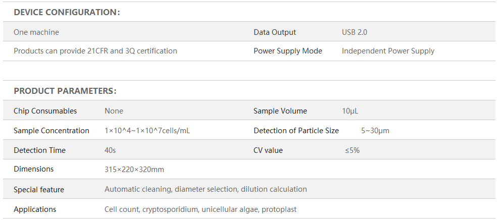 JIMBIO CL Flow Coulter Counter II adopts new microfluidic flow technology to realize automatic counting, particle size and concentration detection of biological particles such as cells and protoplasts. This product has a small sample volume, no consumables, and simple operation. And other advantages, to bring you a brand-new user experience.